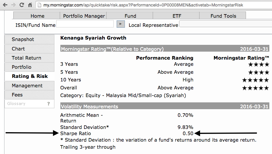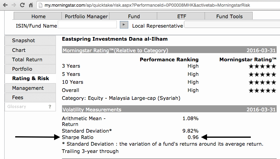 Jadi kat mana bleh dapatkan nilai Sharpe Ratio Unit Trust yang ada di pasaran?